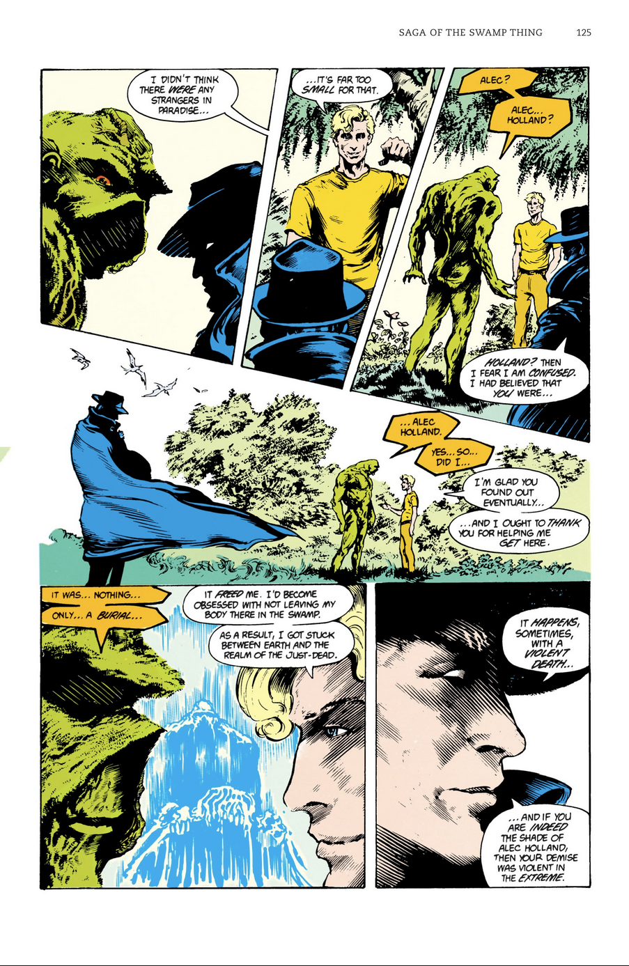At one point, Swamp Thing must find and bury the bones of Alec Holland in order to allow him to pass into the next plane, a plane which he later visits in the page above. Such a consciously constructed sense of self, one that is so aware of its own flimsy construction yet repeatedly chooses to hold onto the humanity that it knows is a whole-cloth invention, raises questions of the construction of self in much more mundane circumstances than those of Earth elementals and apocalyptic supervillains. What is it that makes a man, what is it that makes a human, and what is it that makes the world we live in?